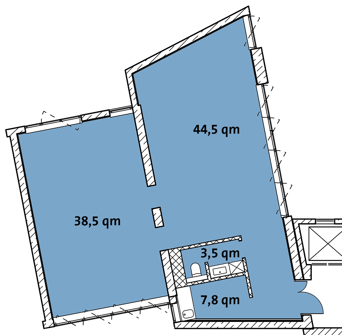 In dem vorderen Betoneckturm, eine der Ikonen von ExRotaprint aus den späten 1950er Jahren, wird die Einheit im 2. Stock frei. Gemäß unserem Nutzungskonzept kommt hier ausschließlich eine Nutzung aus dem gewerblichen oder sozialen Segment in Frage. Ein gewerbliches Unternehmen, Start-Up oder eine NGO wäre ideal. Von Bewerbungen aus dem Bereich Kunst, Kreative oder Kultur bitten wir Abstand zu nehmen.