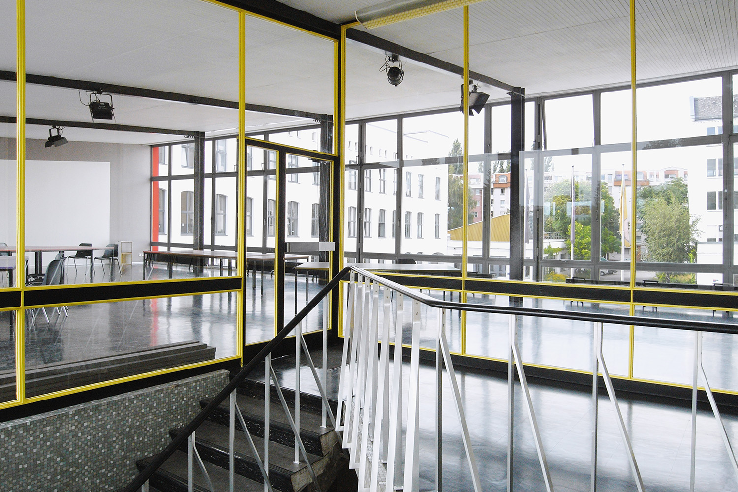 Das von Architekt Klaus Kirsten 1956 errichtete ehemalige Technische Büro der Firma Rotaprint ist von großzügigen, nach Norden und Süden ausgerichteten Fensterflächen unter einem ansteigenden Pultdach geprägt. Die Glaskiste ist 185 qm groß, Tische und Stühle, Internetzugang und Verdunklung sind vorhanden. Technische Ausrüstung, Beamer, Notebook, Leinwand, Tonanlage, Mikrophone genauso wie Flip Charts oder weitere Ausstattungen können je nach Bedarf gebucht werden. Die beliebte ExRotaprint Kantine kann unkompliziert für das Catering sorgen.