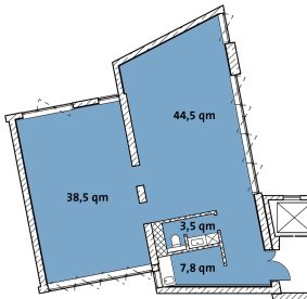 Die Einheit ist 94,3 qm groß, verfügt über zwei großzügige Arbeitsbereiche, ein WC und eine Teeküche. Sie eignet sich zur Nutzung als Büro, für Meetings und nur bedingt für leichte handwerkliche Tätigkeiten. Netzwerkkabel sind in der gesamten Einheit verlegt. Es gibt einen Personenaufzug. Auf dem ExRotaprint Gelände gibt es eine Kantine. Die Bilder zeigen die Möblierung der Vormieter.